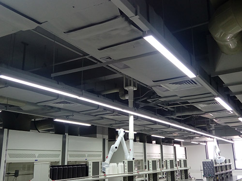 故此新建的實驗室采(cǎi)用負壓控(kòng)製方式進行排風及(jí)補風係統的(de)配合,利用傳感器實時監測實驗室內與外界的壓差值,調節新風(fēng)補風量,使之保(bǎo)持略低(dī)於排風(fēng)量,從而保持房間微負壓,確保廢氣不會外溢到室外影響其他人員(yuán)的安全。由於該控(kòng)製模式為實時調節,可以較(jiào)為穩定地實現微負壓控(kòng)製,能進一步提高實驗室的安全性。