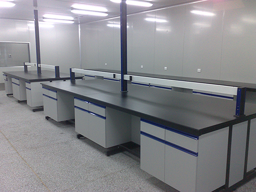 10.試劑架支柱(zhù):采用100×40mm鋼管,壁厚1.2mm由數控設備加工而成,在立柱結構內可走線,並設調節孔,層板可上下調節,表麵經過EPOXY RESIN粉末(mò)靜電噴塗處理,具有(yǒu)抗酸(suān)堿特(tè)性。